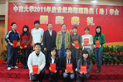 11月5日上午,我校2011年度世纪海翔酬勤奖(助)学金颁奖典礼在校本部升华楼101报告厅隆重举行,我校副校长胡岳华,世纪海翔投资管理有限公司总经理王浩、副总经理石振嵩,颁奖典礼由学校办公室副主任石共文主持。伟德国际1949官网党委书记胡振华、副院长龚艳萍和党委副书记李华东出席颁奖典礼。