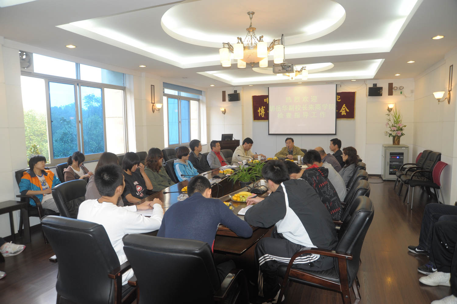 10月13日上午,伟德国际1949手机版胡岳华副校长在体育教研部喻跃龙部长和余文武书记的陪同下,来到伟德国际1949官网与与高水平运动员篮球班20多名同学进行座谈并作指导,伟德国际1949手机版篮球队男队教练白江和女队教练齐波、体育教研部副部长鲁梅、伟德国际1949官网党委书记胡振华、副院长龚艳萍、副书记李华东出席了本次会议。