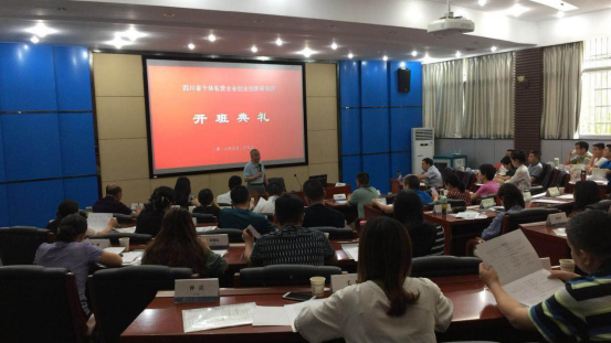 2018年5月29日上午,伟德国际1949官网四川省个体私营企业创新创业研修班在管理楼管阶一教室举行隆重的开班典礼。四川省个体私营企业协会副秘书长邓清源同志、伟德国际1949官网副院长张颖等64位来自四川的个私协系统管理人员及民营企业家出席了典礼,伟德国际1949官网EDP中心陈丹老师主持开班典礼。