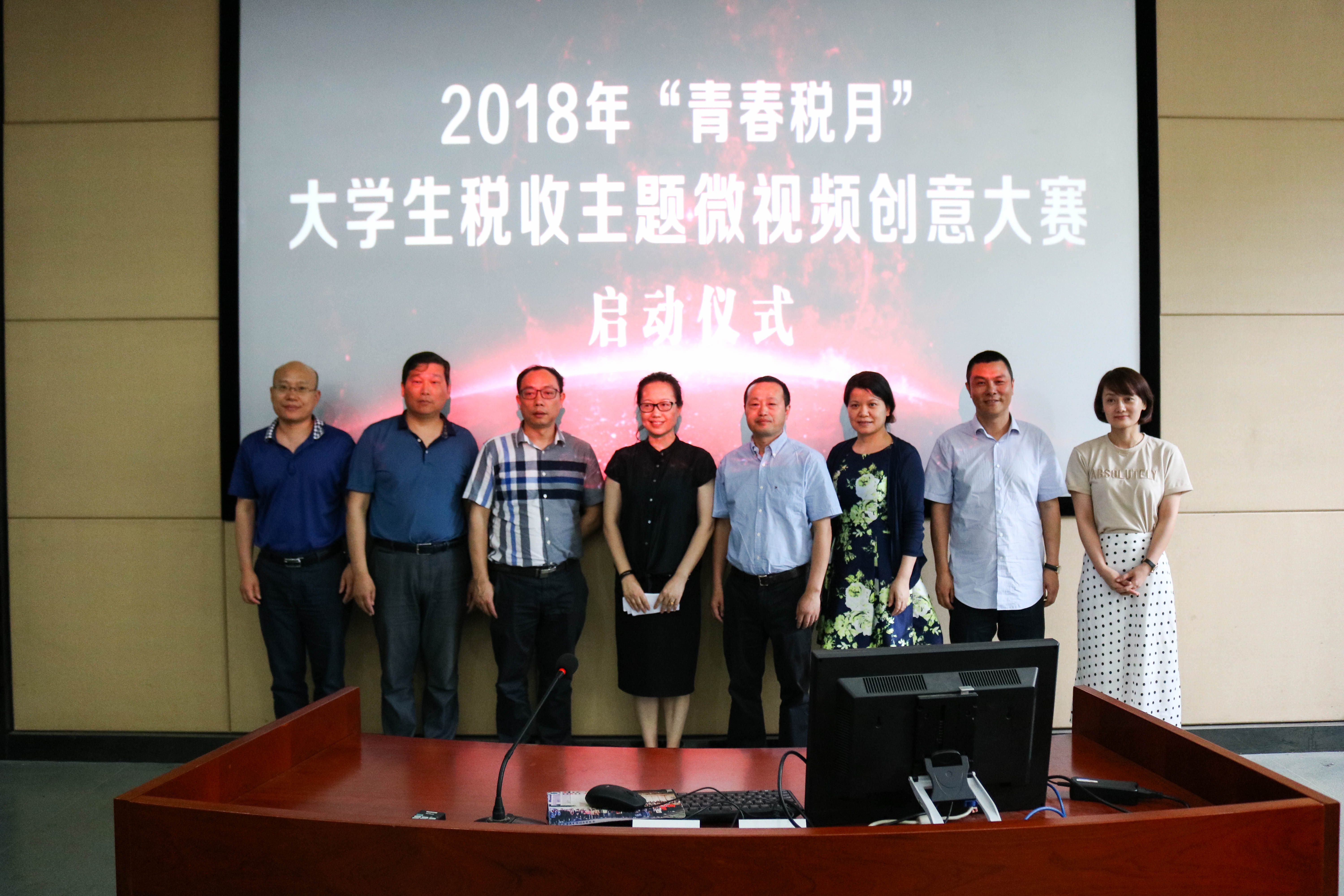 为促进税收宣传与大学生就业创业有机结合,5月16日下午,“青春税月”大学生税收主题微视频创意大赛启动仪式在伟德国际1949官网管理楼“世纪海翔”厅成功举办。湖南省国税局新闻中心主任肖江浩、湖南省国税局政学法规处副部长李羽中、湖南省国税局纳税服务处副处长黄艳、长沙市国税局党组成员、副局长钱秀芳、伟德国际1949手机版计划财务处副处长徐爱兰、伟德国际1949手机版武装部部长陈迎明、长沙市国税局纳税服务处处长郭丽珍、长沙市国税局新闻中心主任王柏颐、红网长沙站站长谭忠欣出席了此次启动仪式。