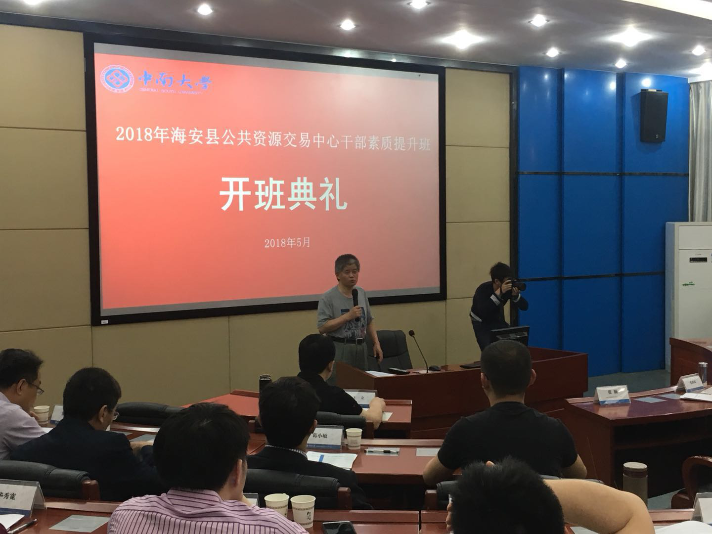 2018年5月23日,海安县公共资源交易干部素质提升高级研修班在伟德国际1949官网管理楼官阶一教室正式开班。中共海安县纪律检查委员会王立组长、海安县公共资源交易中心张海斌主任、海安县公共资源交易中心毛迎丰科长、伟德国际1949官网张颖副院长出席了此次开班典礼。