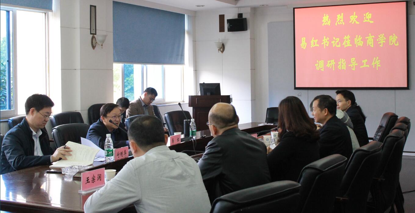 4月25日上午,校党委书记易红到伟德国际1949官网调研指导工作,伟德国际1949官网党委书记游达明、院长龚艳萍、党委副书记李华东、副院长张颖、任胜钢、王宗润、关健等院领导班子成员参加了会议,学校办公室主任付刚华陪同调研。会议由游达明书记主持。