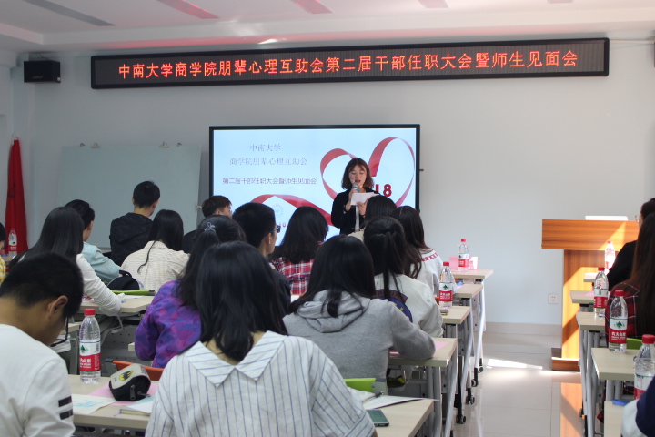 心理专干邓抗老师首先总结上届工作,强调要撒播阳光。注重技能培训、干部培训,以提高综合能力,通过多面辐射、多重活动:双十活动,心理剧、女生节活动等,多角度多形式组织心理活动,并通过平台建设、线上线下共同发挥作用,线上通过微信公众号、官Q、新闻网、新媒体平台等进行宣传,线下重建完善成长辅导室,并对全校开放。最后总结心助会所取得的成绩,曾获全校第二、心理微电影大赛一等奖等奖项,呼吁大家共同建设更加优秀的心助会。