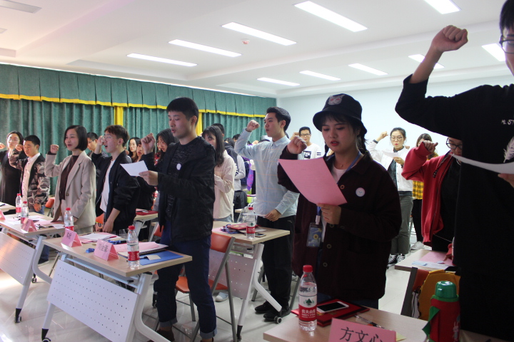 在各个部门的自我介绍和才艺展示环节,研究生心理部门的展示简短有趣;办公室以倾心相伴,温暖出行为主题进行介绍并深情演唱歌曲《我从崖边跌落》。培训部从我们有谁我们是干什么的出发进行展示并实力表演节目小品。组策部通过视频进行介绍,唱歌视频让大家感受到了这个集体的温暖。新宣部则有自己的新意,配音秀让大家开怀大笑,他们的手指舞也是创意满满。