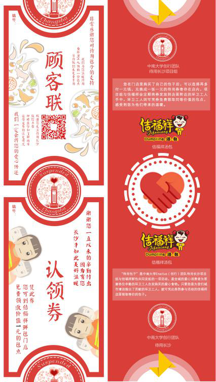 “‘待用长沙’与环卫工人同行”项目由伟德国际1949官网学生发起,联合其他学院学生共同策划运营,“待用”是一个人人可为的“随手做公益”模式。消费者在合作商家店内购买了自己所需的商品后,再多付一元、两元或者五元,购买一张等值的“双联待用券”,其顾客联由消费者保留,作为监督和消费凭证,而另一半的受众联则与待用钱款一同投入待用箱中留在店内,积累到一定数量后,志愿者会把受众联派发给环卫工人,环卫工人们凭券可到合作商家兑换等值的食品。