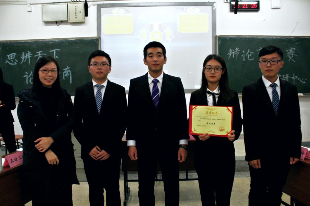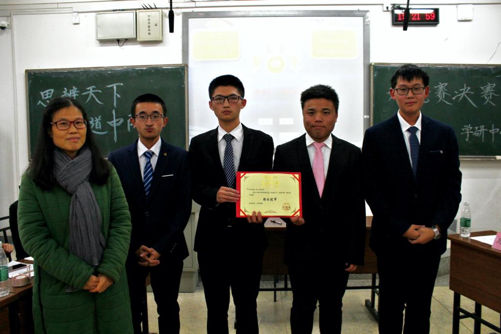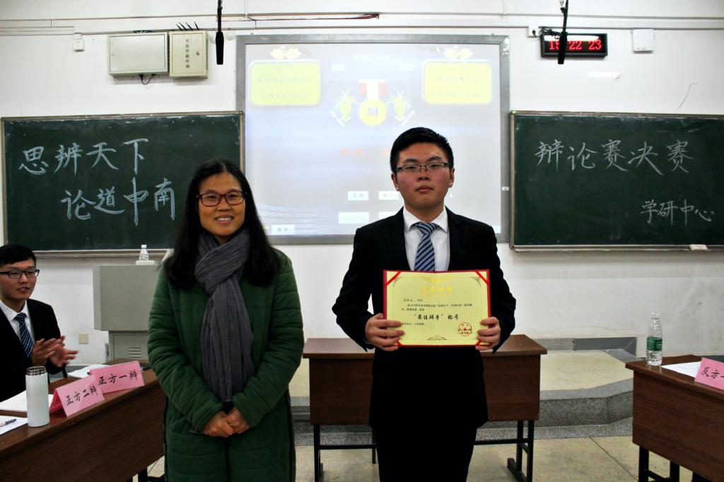 经过各位评委和观众评分,“我们都是奇葩队”以92.25分拔得头筹,“优秀”战队四辩颜泉润获得“最佳辩手”称号。三位老师分别为冠亚军队伍和最佳辩手颁发证书,并合影留念。至此,为期一个多月的辩论赛圆满落幕。