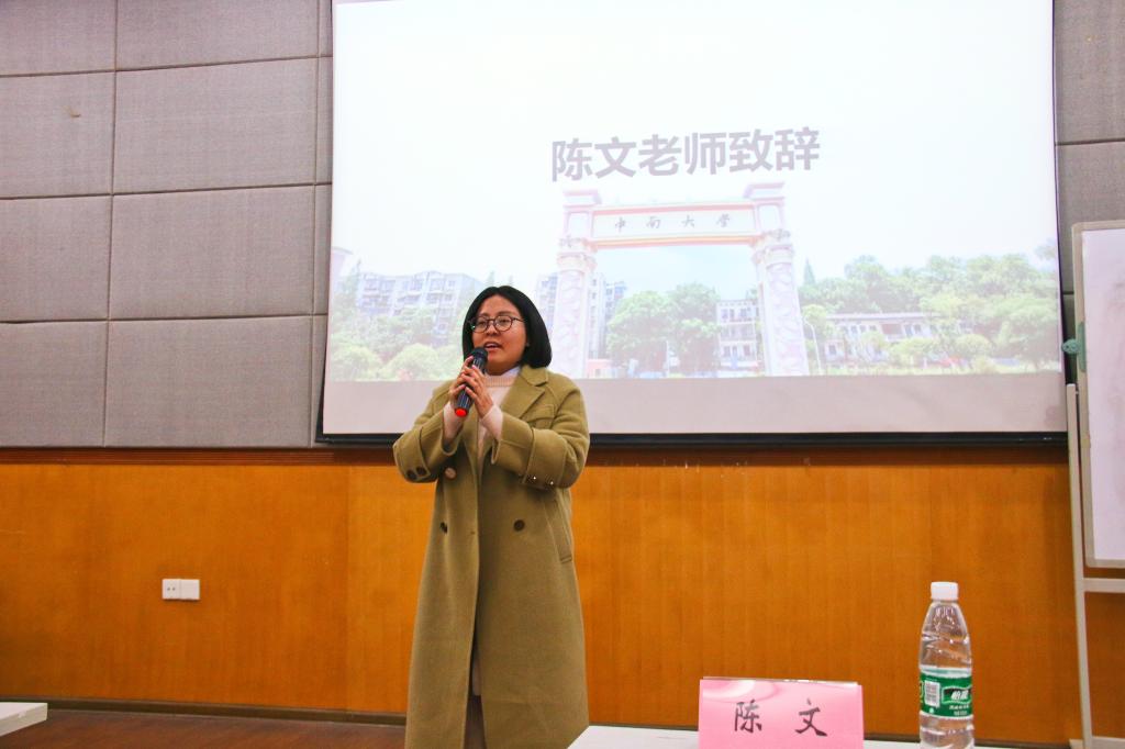 活动伊始,陈文老师亲切致辞,她希望同学们可以通过参加此次讲座,从讲师的经验分享中受到启发,对自己的未来有更明晰的规划,并表达了对同学们美好未来的希冀。随后,老师们为24位优秀学生颁发大学生涯规划讲师聘书。