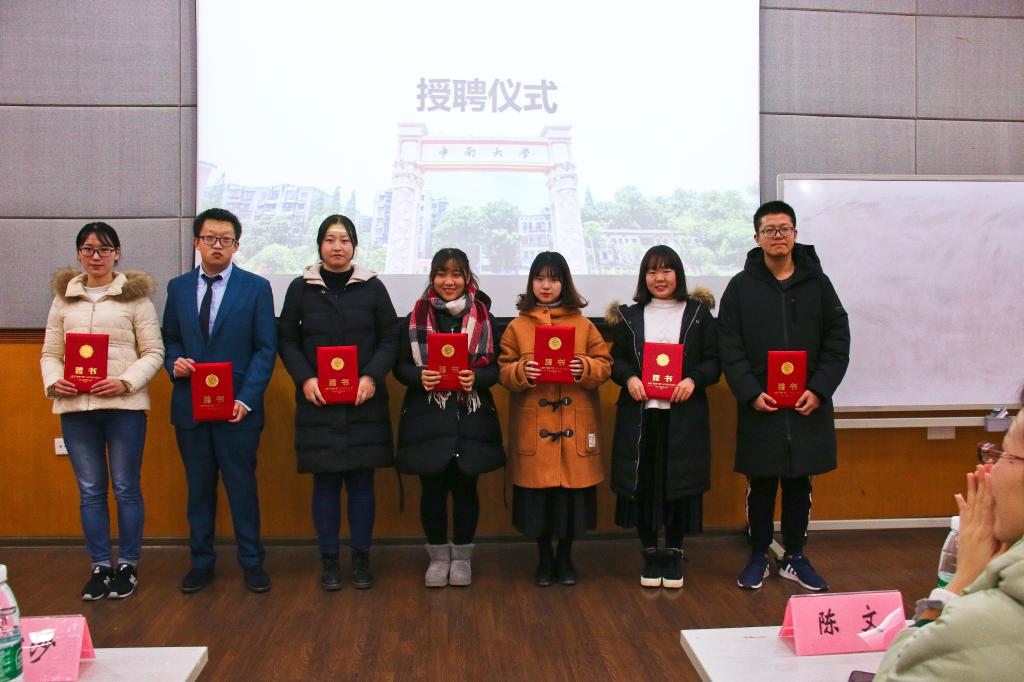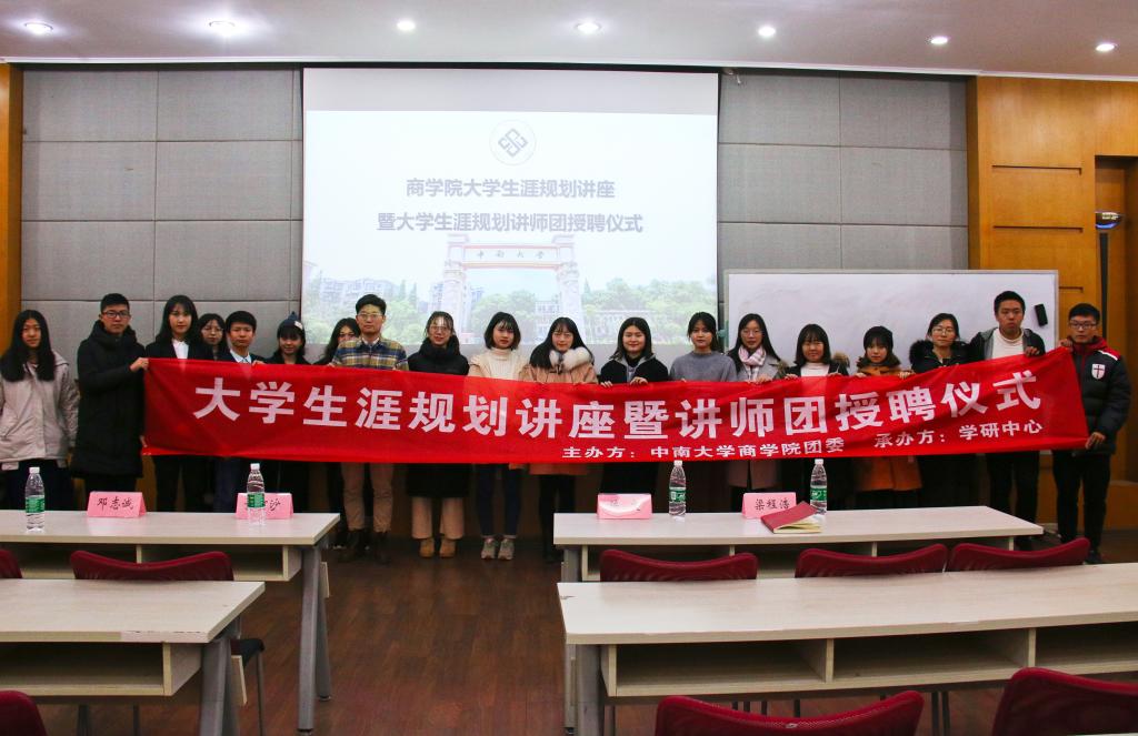 12月12日晚,伟德国际1949官网大学生涯规划讲座暨大学生涯规划讲师团授聘仪式在校本部管理楼409顺利举行。院团委书记陈文, 17级辅导员梁程浩,18级辅导员黄河沙、邓志诚及近百名学生参加此次活动。
