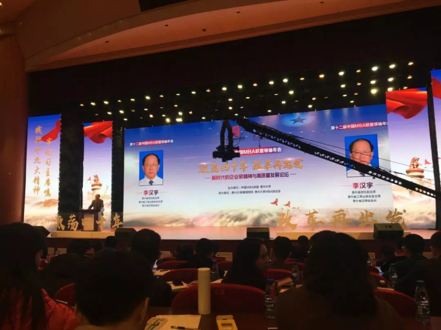 2018年12月15日-16日,第十二届中国MBA联盟领袖年会暨“新时代的企业家精神与高质量发展”论坛在“大数据之城”——贵阳贵安新区贵阳会议中心召开。本次年会和论坛是由中国MBA联盟和贵州大学联合主办,贵州大学管理学院、贵州大学MBA联合会承办。我校MBA中心副主任杨秋娟老师带队,MBA中心张龙伟老师,MBA联合会副主席喻海波、外联部部长郭佳应邀与来自全国100多所知名院校师生、知名企业家出席了本次盛会。中央电视台、贵州电视台、中国MBA教育网、新浪网、腾讯网等媒体全程宣传及报道。