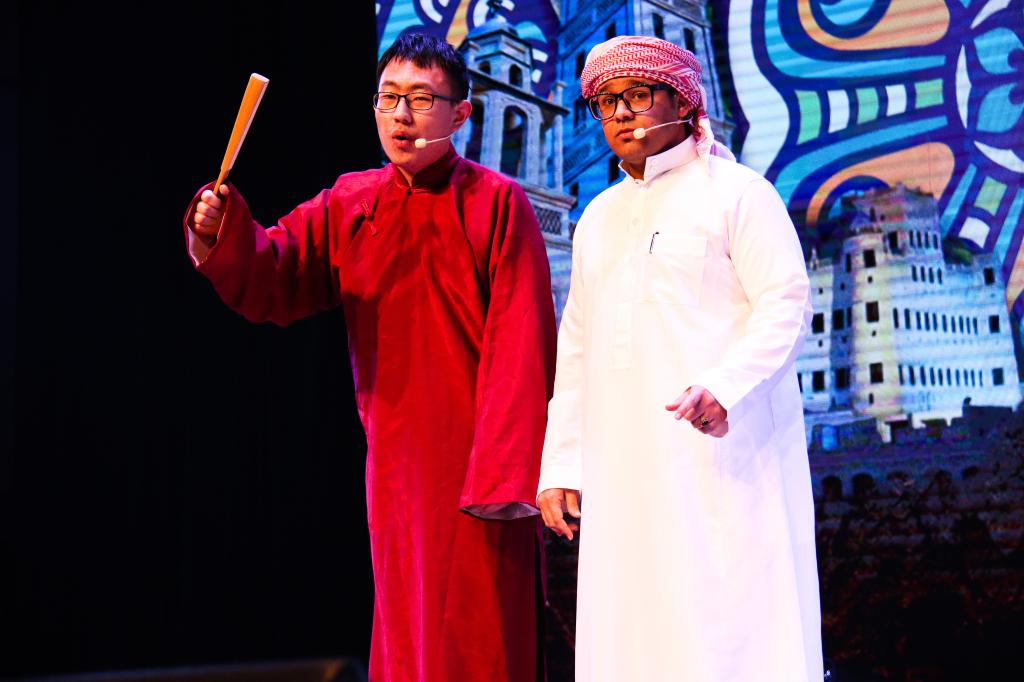 节目间隔,穿插抽奖活动。活泼的来电竞速方式调动现场气氛,更使海外学子与中国学子共同欢笑,拉近了心间的距离。现场海外学生演员与中国观众多次互动,观众席上的海外学子更是与中国学子交流谈笑,气氛融洽,令人动容。
