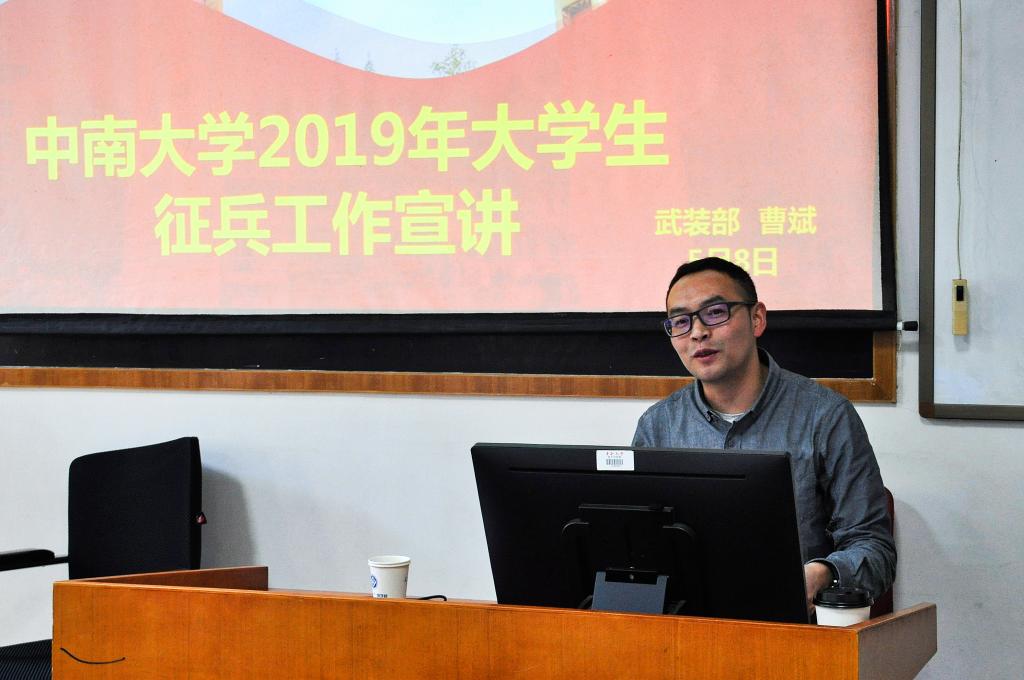 “热血中南好儿女,报效祖国当兵去”。5月8日下午,伟德国际1949官网2019年征兵工作宣讲会于校本部管理楼圆满举行。伟德国际1949官网党委副书记陈迎明,16级辅导员石越出席会议。会议由武装部曹斌老师主讲,学院征兵专干黄河沙主持。