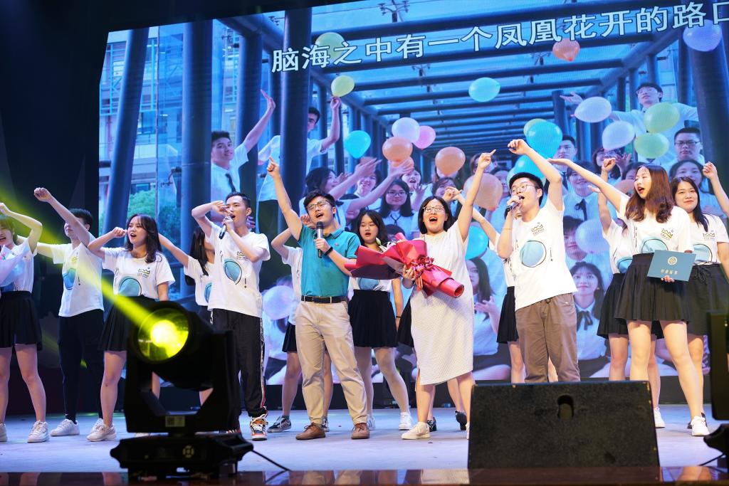 随后,晚会正式开始。四位毕业生用一曲火热的舞蹈拉开了本场晚会的序幕,即刻点燃了晚会的气氛。歌舞剧《盛夏季忆》以优美的舞蹈和动人的音乐将大学的故事娓娓道来,引领毕业生走进大学四年的温情回忆,使同学们产生无限感慨;合唱《夜空中最亮的星》则给现场观众留下了难忘的听觉盛宴;脱口秀《你行我商》、情景剧《平凡而又耀眼的你》诙谐幽默,包袱不断,意料之外又情理之中的情节博得全场笑声与掌声;在《老师我想你》节目中,陈晓红院士、院长龚艳萍及学院教师同台献唱,陈晓红院士更是打开手机手电筒与台下观众亲密互动,为同学们加油鼓劲。