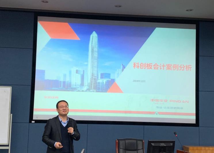 2019年12月25日下午2:30,应会计学系主任修宗峰副教授邀请,平安证券投行部执行总经理郑朝晖博士来访,做客由我们专硕办、会计学系与会计研究中心联合主办的“MPAcc大讲堂”第1期,并带来了题为“科创板会计案例剖析”的讲座。此次讲座由修宗峰副教授主持,会计学系何红渠教授、周志方副教授、喻凯副教授、李世辉副教授、周浪波副教授、王东清副教授、易玄副教授、卢佳友副教授、金友良副教授、曾辉祥老师及湖南工商大学贺勇老师等出席,MPAcc专业研究生参加了此次活动。